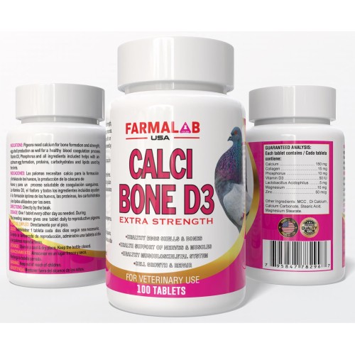 - Included Components: Farmalab Calci Bone D3 Extra Strength Calcium Supplement for Pigeons, 100 Tablets, with Vitamin D3 and Collagen
