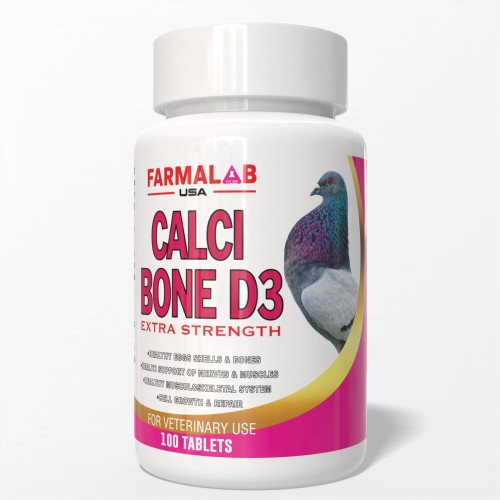 - Model Name: Farmalab Calci Bone D3 Extra Strength Calcium Supplement for Pigeons, 100 Tablets, with Vitamin D3 and Collagen