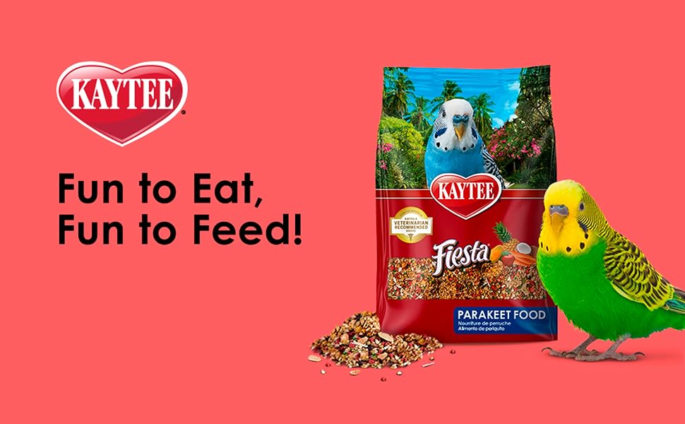It’s a party at feeding time with Kaytee Fiesta! Kaytee Fiesta Parakeet Food is a fun-filled, complete diet your animal will love, all while getting the nutrition they need to thrive. Filled with an exciting variety of ingredients, shapes and textures, this bird food blend engages your pet at feeding time and stimulates their natural foraging instincts to keep them from boredom. Kaytee Fiesta Parakeet Food was formulated by a pet bird nutritionist so that your parakeet is getting necessary nutrition in every bite. This is a nutritionally fortified gourmet diet made of a premium blend of fruits, vegetables, seeds and grains offering maximum variety and stimulation for your pet. While they’re loving their meal, you’ll love watching them work through the party of ingredients, shapes and surprises. This blend supports the digestive, brain, skin and feather health of your pet as part of promoting a healthy and happy bird. Sharing your life with a pet is more than just enjoyable, it’s enriching – and Kaytee believes feeding time can be the same. With over 150 years of nutritional experience, it’s no wonder why Kaytee is at the heart of every healthy feeding routine. |