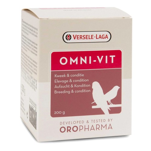 OMNI-VIT 200gr by Versele-Laga - Oropharma for Birds contains vitamins, amino acids and trace elements with a high biological availability, which ensure an optimal development of proteins in the body, essential for good breeding and condition.
