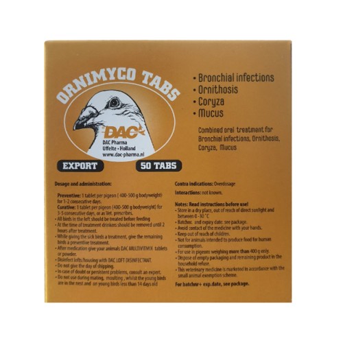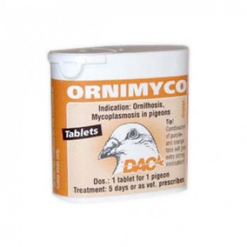 Ornimyco by DAC in tablets is used for individual treatment of respiratory infections (Mycoplasma, Pneumonia) and Bumblefoot infections in raptors.