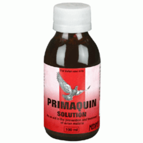 Primaquin 100ml by Medpet is for the treatment and prevention of Malaria in Racing Pigeons. Easy to administer. Special stabilized formulation allows for use in drinking water. Extremely safe. Cost effective.